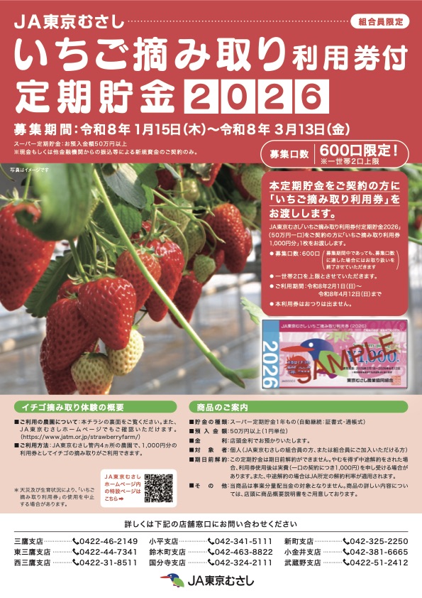 「いちご摘み取り利用券付定期貯金2026」のご案内
