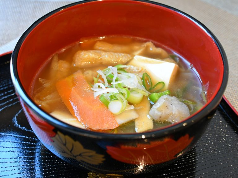 1サトイモは皮をむいて乱切り、ニンジンとダイコンは厚さ2~3mmの半月切りにする。ゴボウはささがきにして5分ほど水にさらして水気を切る。ネギは斜め切りにする。